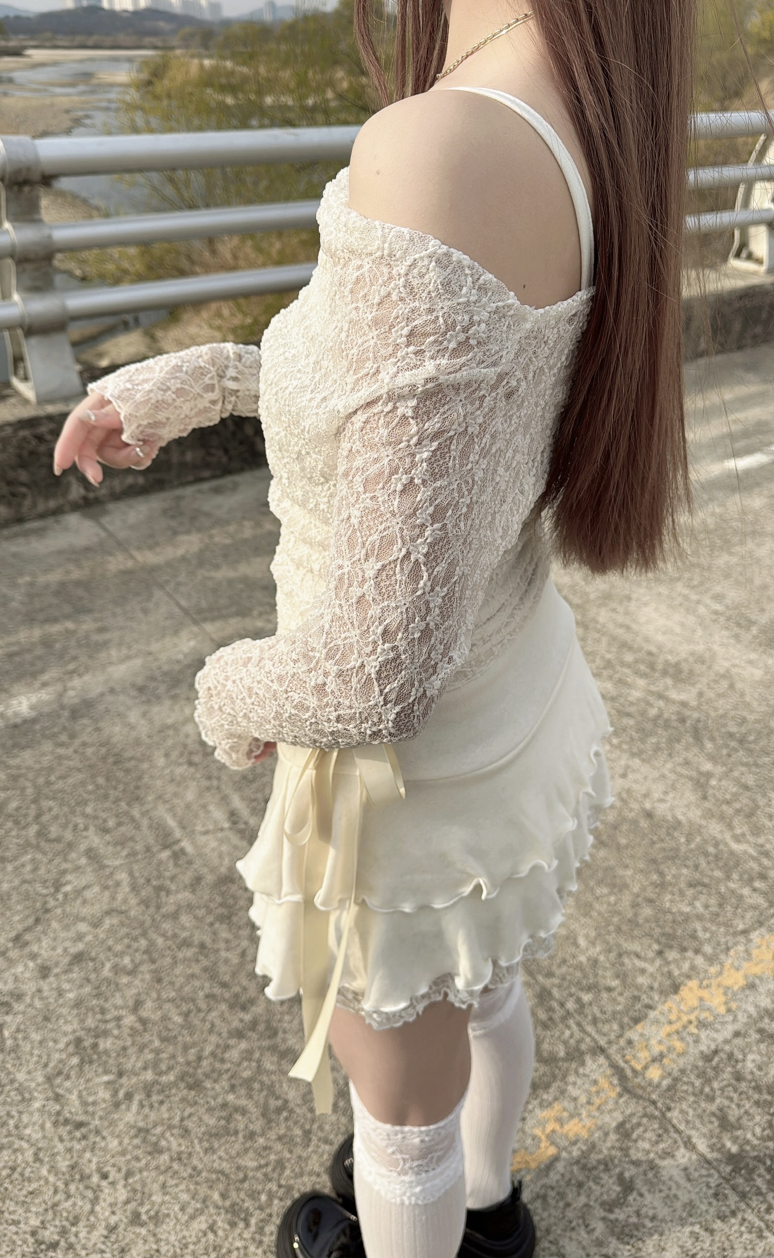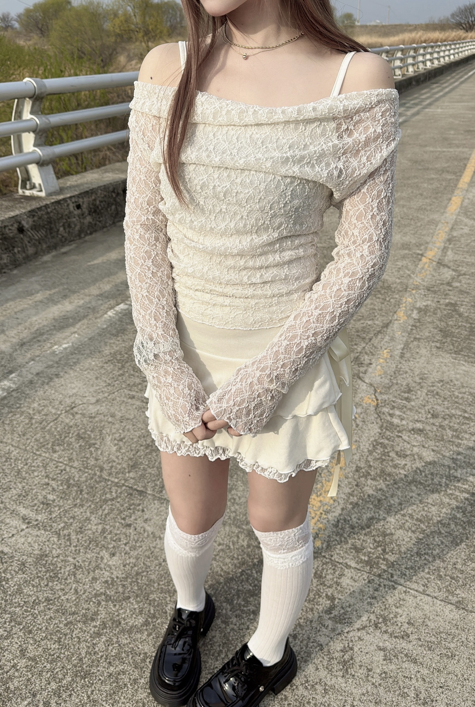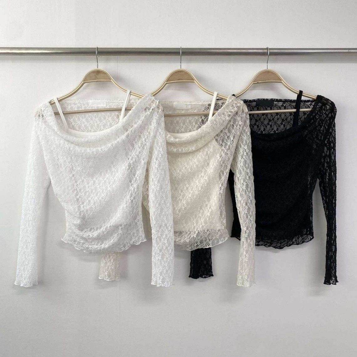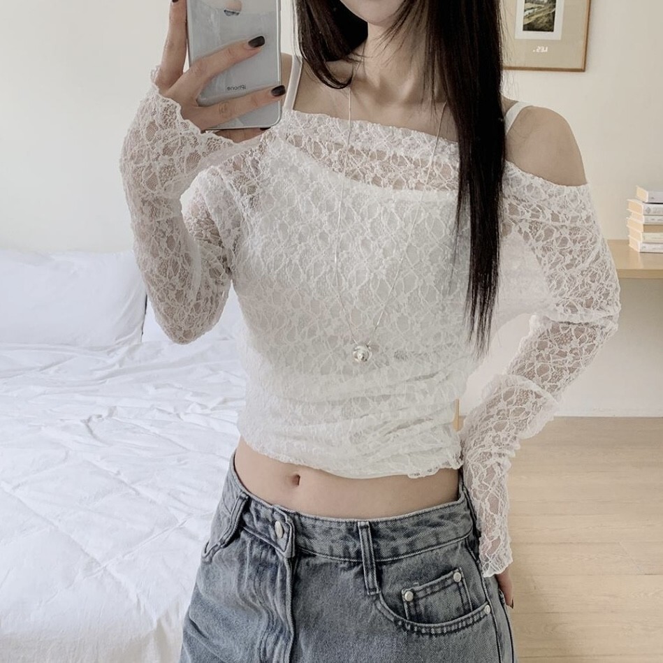 *** 蕾絲罩衫T質感稍偏粗但不到刺膚,肌膚高度敏感者三思後可接受再下單 ***