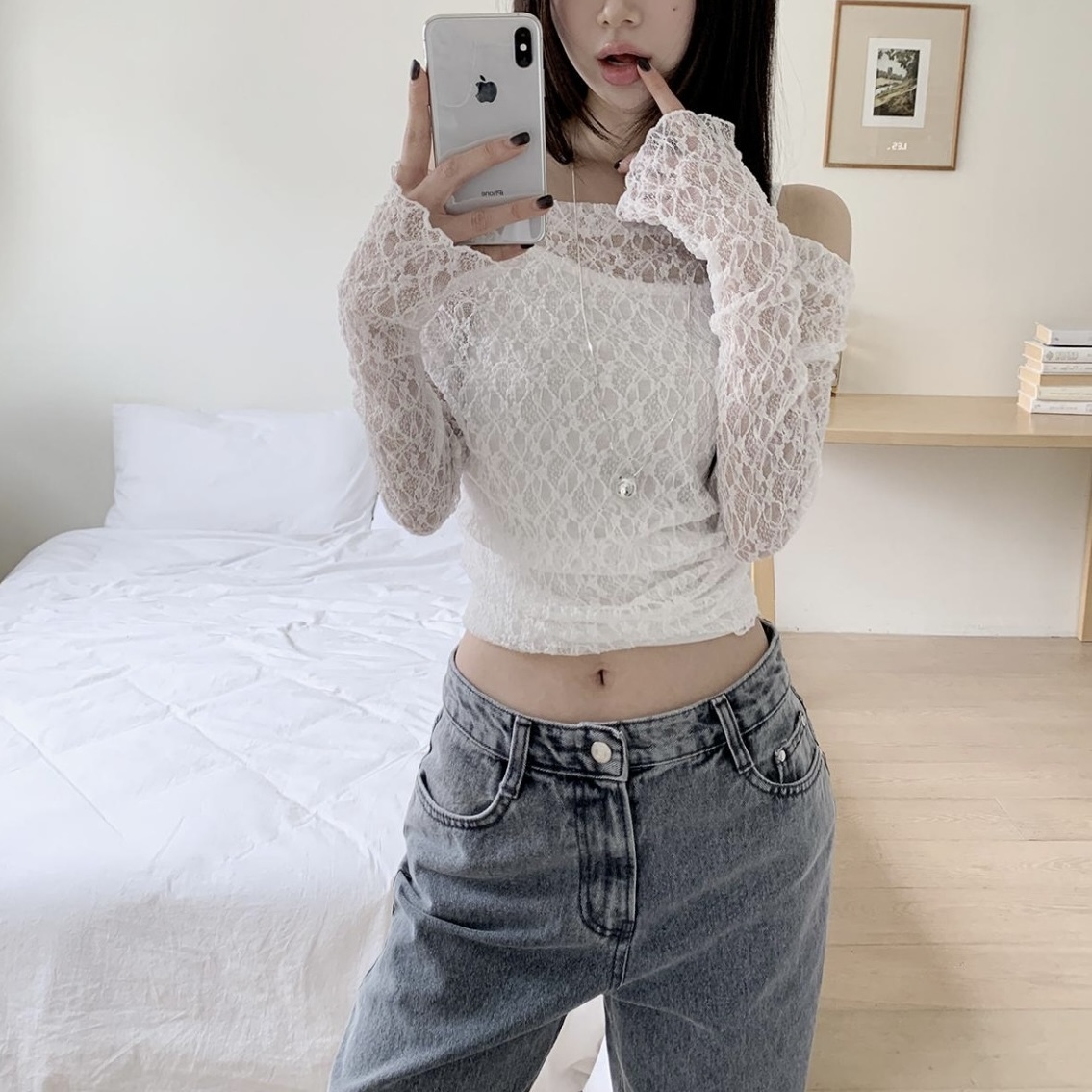 *** 蕾絲罩衫T質感偏粗但不到刺膚,肌膚高度敏感者三思後可接受再下單 ***